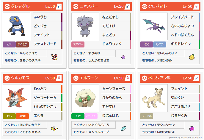 ヤミカラスというポケモンはトリプルではしばしば見るものの、使ったことも育成したこともなく数値すらよく覚えていないレベルの認識だったのでトリプルwikiを見ながら組んだ。